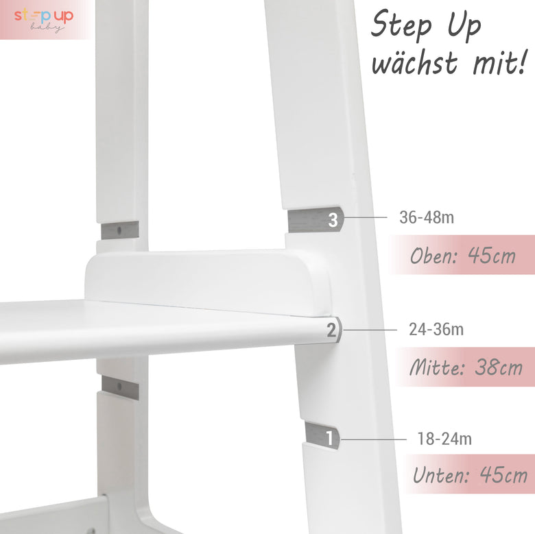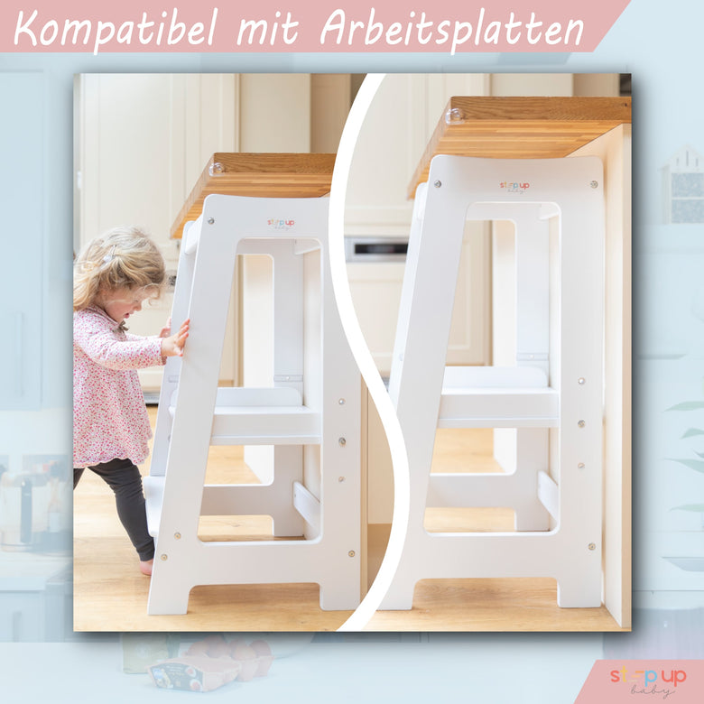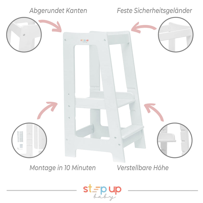 Mit drei Plattformhöhen wächst der Turm mit Ihrem Kind und wird ihm jahrelange Unabhängigkeit geben und Spaß machen.